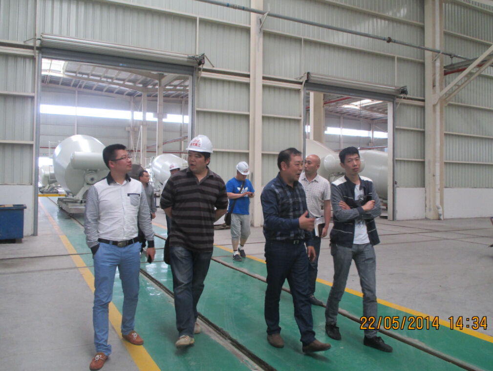 趙龍重工作為義烏市重點(diǎn)項(xiàng)目工程之一,以生產(chǎn)大型預(yù)拌混凝土攪拌運(yùn)輸車為主,受到了金華市散裝水泥發(fā)展與應(yīng)用協(xié)會(以下簡稱“散協(xié)”)和義烏散裝水泥辦公室(以下簡稱“義烏散辦”)的高度重視和關(guān)注。5月22日,為了及時(shí)了解并全面掌握趙龍重工生產(chǎn)經(jīng)營情況以及存在的困難和問題,義烏散辦主辦的“大走訪”企業(yè)調(diào)查活動于我公司義烏生產(chǎn)基地順利開展.金華市散協(xié)斯敬明副理事長及楊欲發(fā)秘書長、義烏散辦王恒華主任、義烏商混公司朱小明等領(lǐng)導(dǎo)在我司總經(jīng)理斯之清、馬宏偉陪同下共同參觀了義烏特種車生產(chǎn)車間。