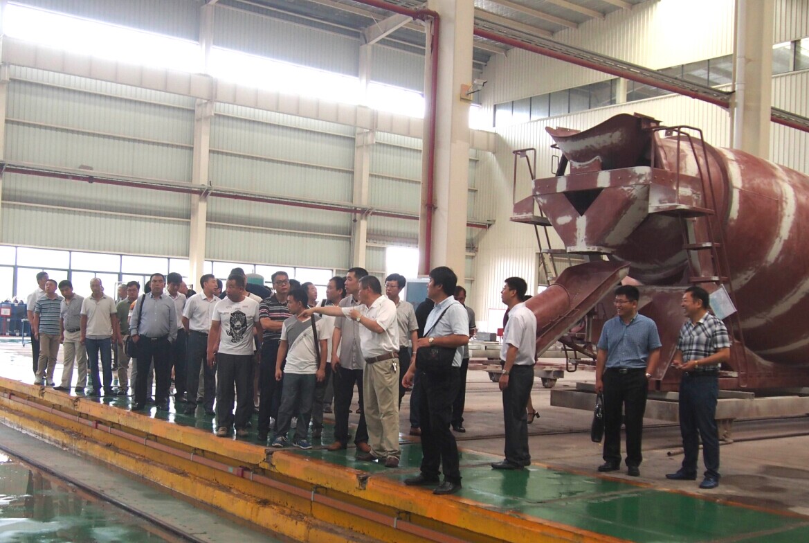 圖為一汽解放參會人員參觀趙龍重工生產(chǎn)基地)
